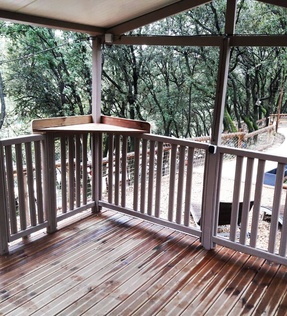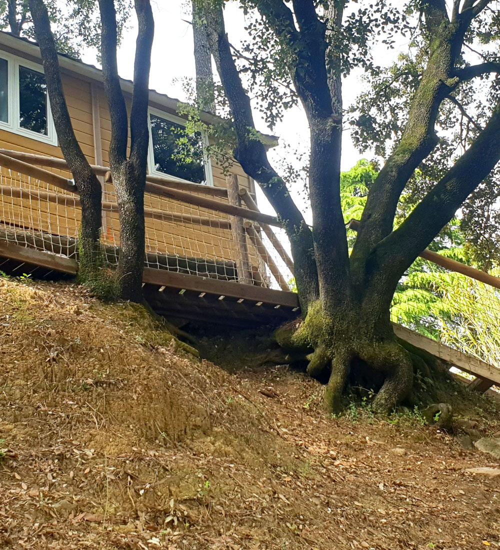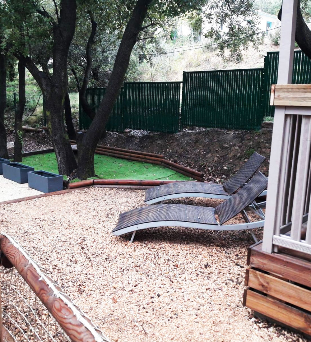 C’est avec grand plaisir que nous sommes enfin prêts à vous recevoir dans la première partie du Domaine du Naizadou : les CHÂLETS. Une surface de 25m2 chacun, perchés et isolés au milieux des chênes pouvant recevoir entre 4 et 6 personnes et totalement équipés.